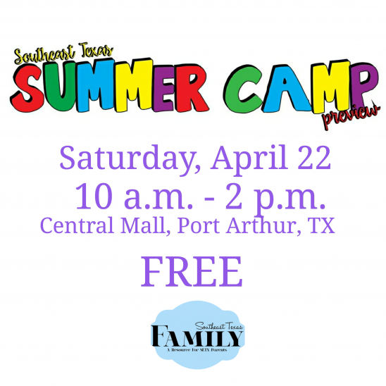 Promote your Golden Triangle Summer Camp – April 22nd. Southeast Texas Summer Camp Preview. Central Mall.